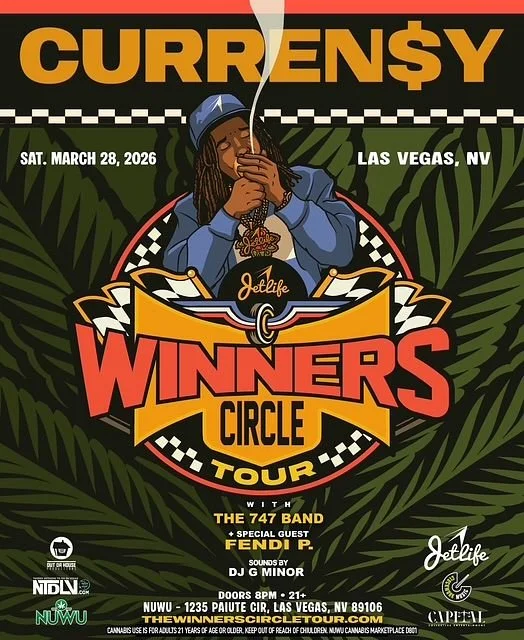 With a career spanning over a decade of classic mixtapes, albums, and collaborations, Curren$y is backed on this tour by The 747 Band, elevating the show with rich live arrangements that bring new life to fan favorites and recent releases alike. As the Winners Circle Tour touches down in over 40 cities nationwide, Las Vegas gets a front-row seat to one of the most respected runs in modern hip-hop.