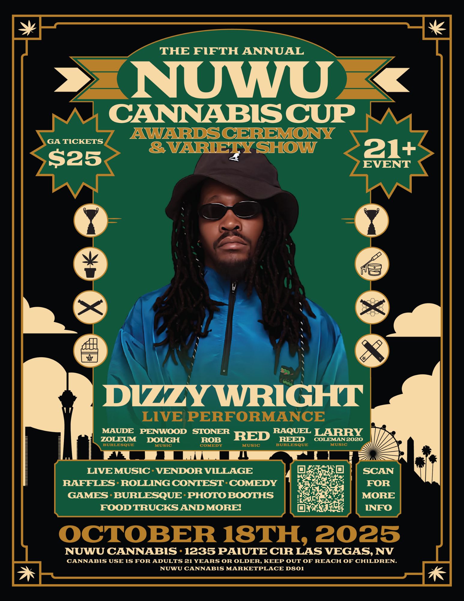 Dizzy Wright – A Las Vegas hometown hero and nationally recognized hip-hop artist, Dizzy headlines the NuWu Cup with a high-energy set that blends lyrical fire and cannabis culture vibes in DTLV.